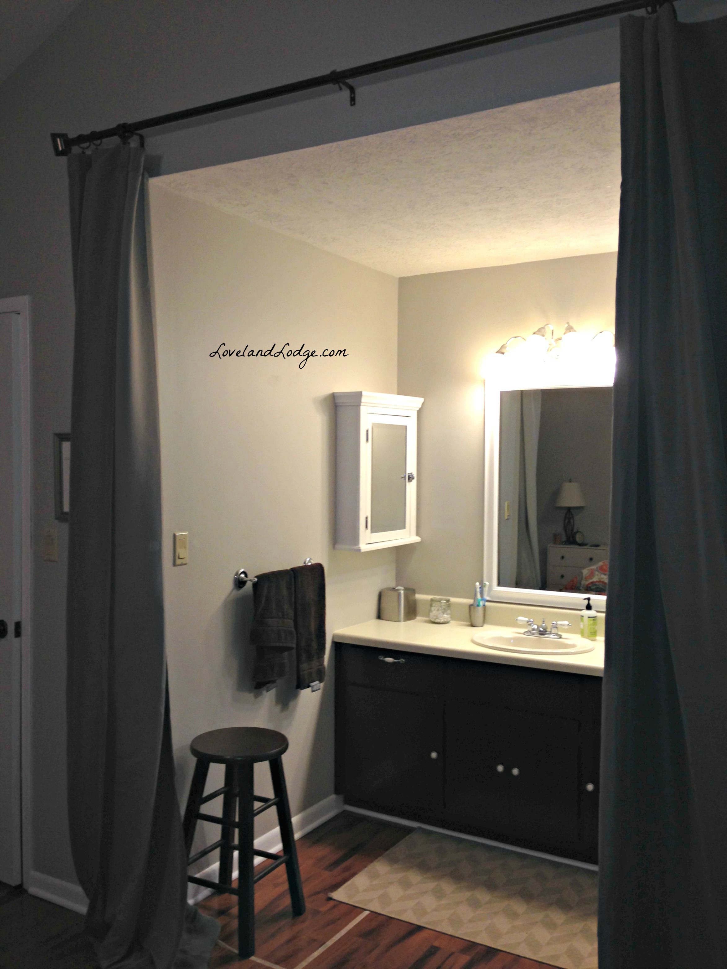 It’s hard to describe what our bathroom looked like before without sharing pictures. Our house was built in 1975 and nowhere was that more clear than the floor plan in the master bedroom (well, maybe the exterior, but that’s another story for another day). Rather than being closed off, the sink and vanity were in an alcove in the bedroom, with no door. This made it extremely difficult for my husband or I to get ready without waking the other up - light flooded the bedroom. We hung some blackout curtains in the interim, but always knew priority No. 1 would be closing in that wall.